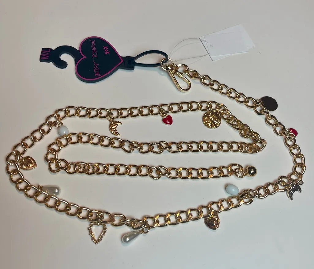 Betsy Johnston Golden metal chain belt with charms Sz M/L New with tags. Stunning Betsey Johnson st... Show more