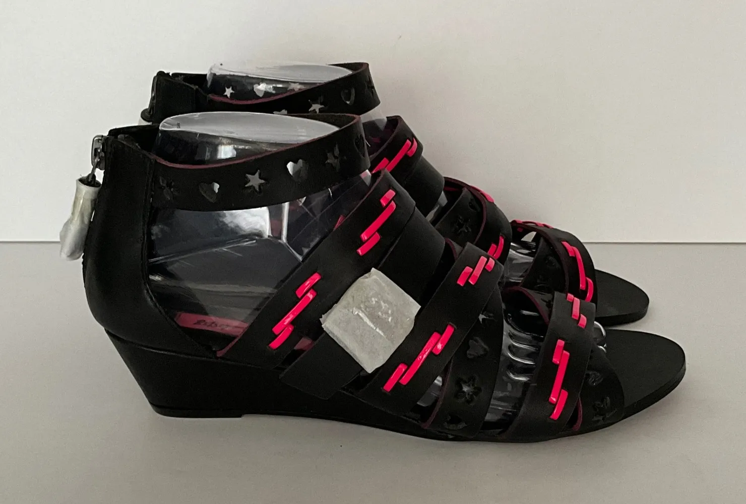 Betsy Johnson Sandals Bollt Gladiator Strappy Cutout Black Pink Accents Size 8 Women's Size 8 Styl... Show more