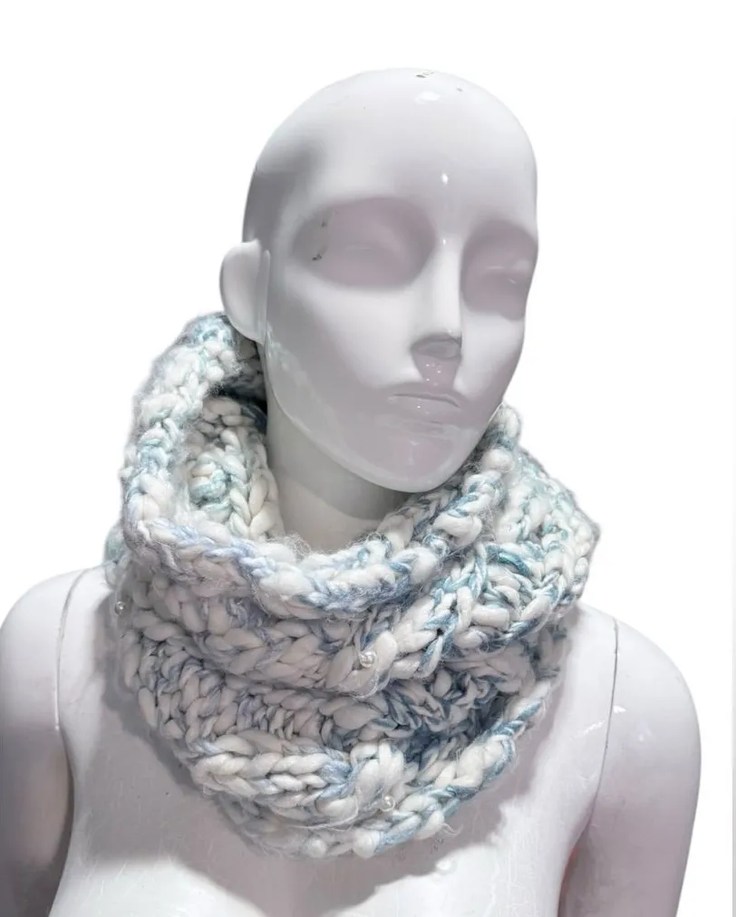 . Betsy Johnson snood chunky cable knit neck scarf pearls heathered. Gently worn.
