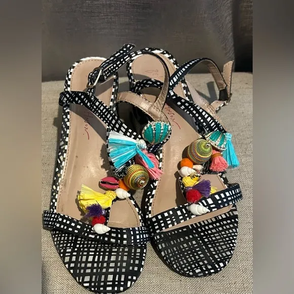 Step out in style with these vibrant sandals featuring playful tassels. Perfect for adding a pop of... Show more
