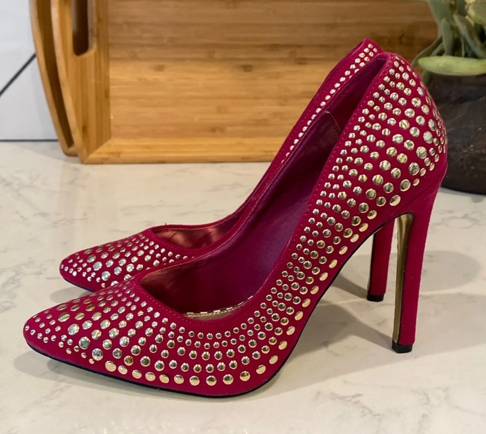 Betsey Johnson Faalyn Fuschia Studded Pointed Toe heels rocker size 6.5 quirky Pink - $48 - From Krystal