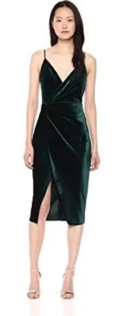 BETSEY JOHNSON Faux Wrap Dress Color: Pine Green Velvet Size: 4 Condition: New without tags Spagh... Show more