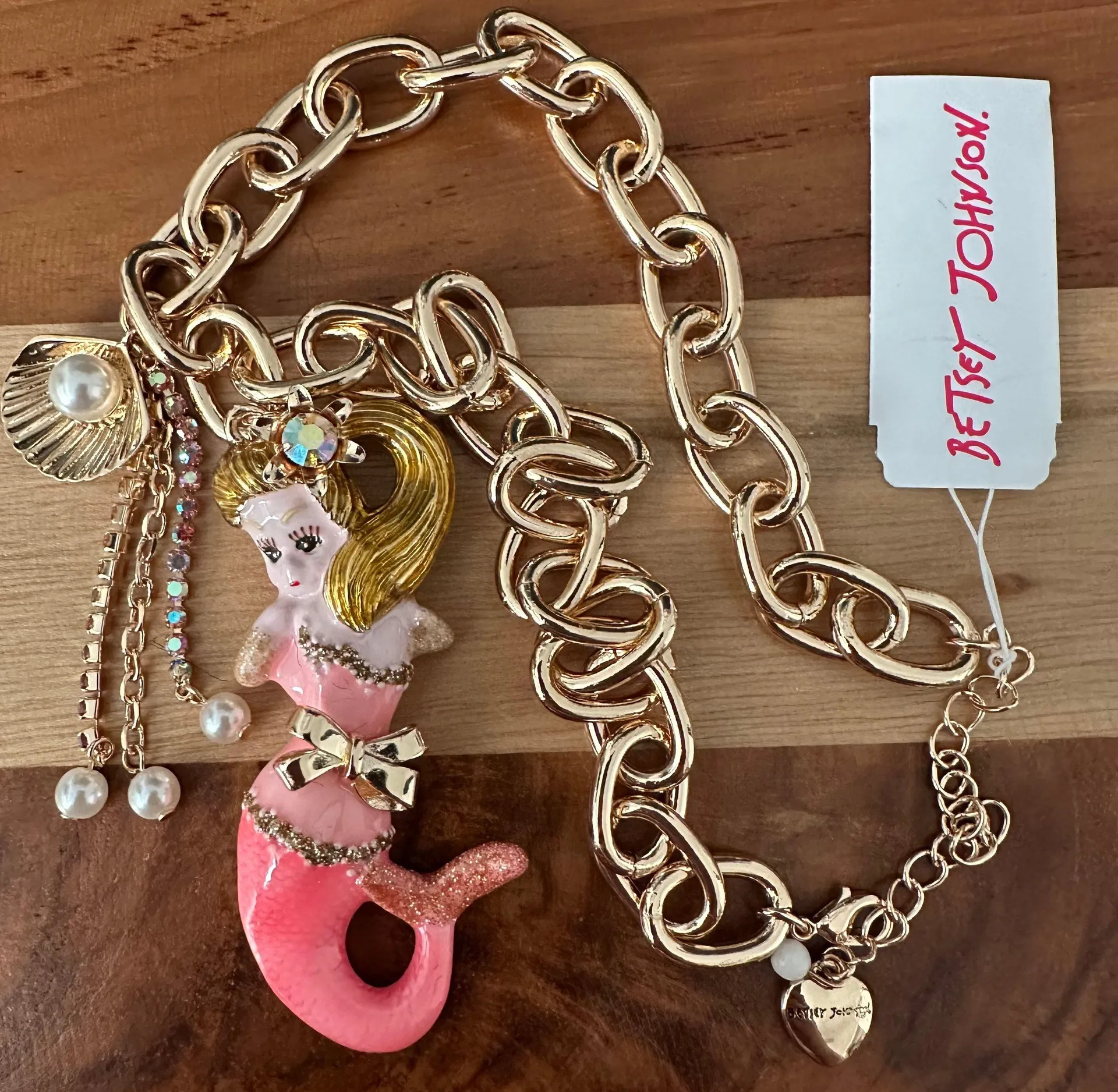 Gold Tone Pink Mermaid Seashell Crystal Pearl Collar Necklace NWT - $67 New With Tags - From Julia