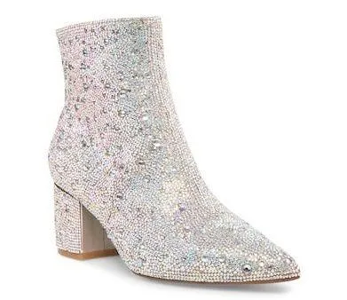 Never worn in public Rhinestone & glitter upper Inside zipper closure Pointed toe Synthetic lining... Show more