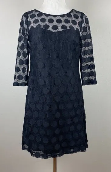 Betsey Johnson Mini Dress 4 Black Polka Dot Lace A-Line Sweetheart Neck 3/4 Sleeve Women's Very goo... Show more