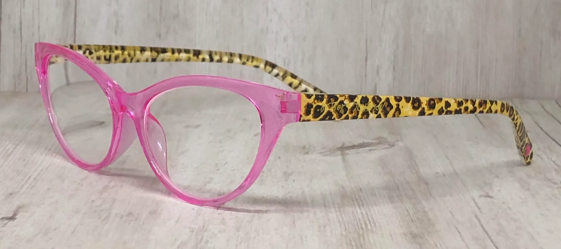 Betsey Johnson cat eye reading glasses Women’s readers translucent pink / leopard retro cat eye eye... Show more