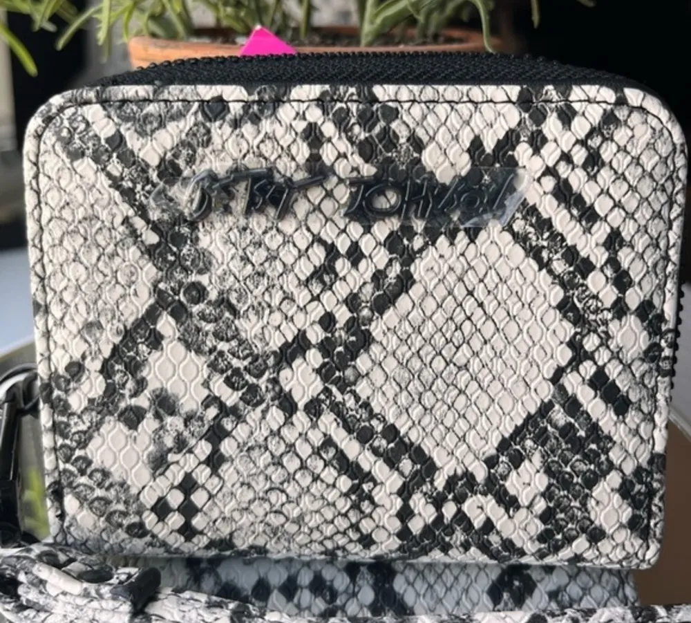 Make a bold statement with this Betsey Johnson snakeskin print wristlet wallet, featuring the brand’... Show more