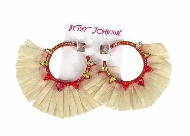 Betsey Johnson Stay Wild Raffia Hoop Earrings Cream, Red Post Back closure Measures approx 2.25 inch... Show more