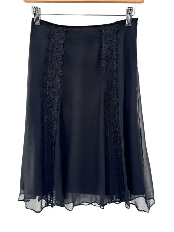 Betsey Johnson Vintage Black Lace 100% Silk A-Line Skirt Gothic Romantic Size 2 - the item is in ex... Show more