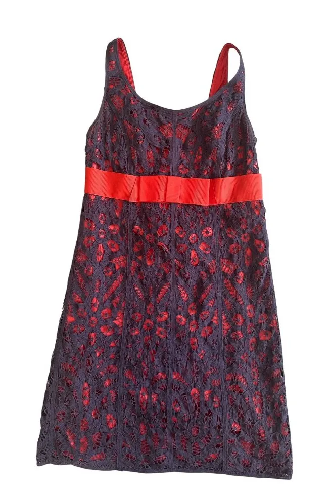 This vintage Betsey Johnson dress features a stunning purple lace design with a charming bow detail.... Show more