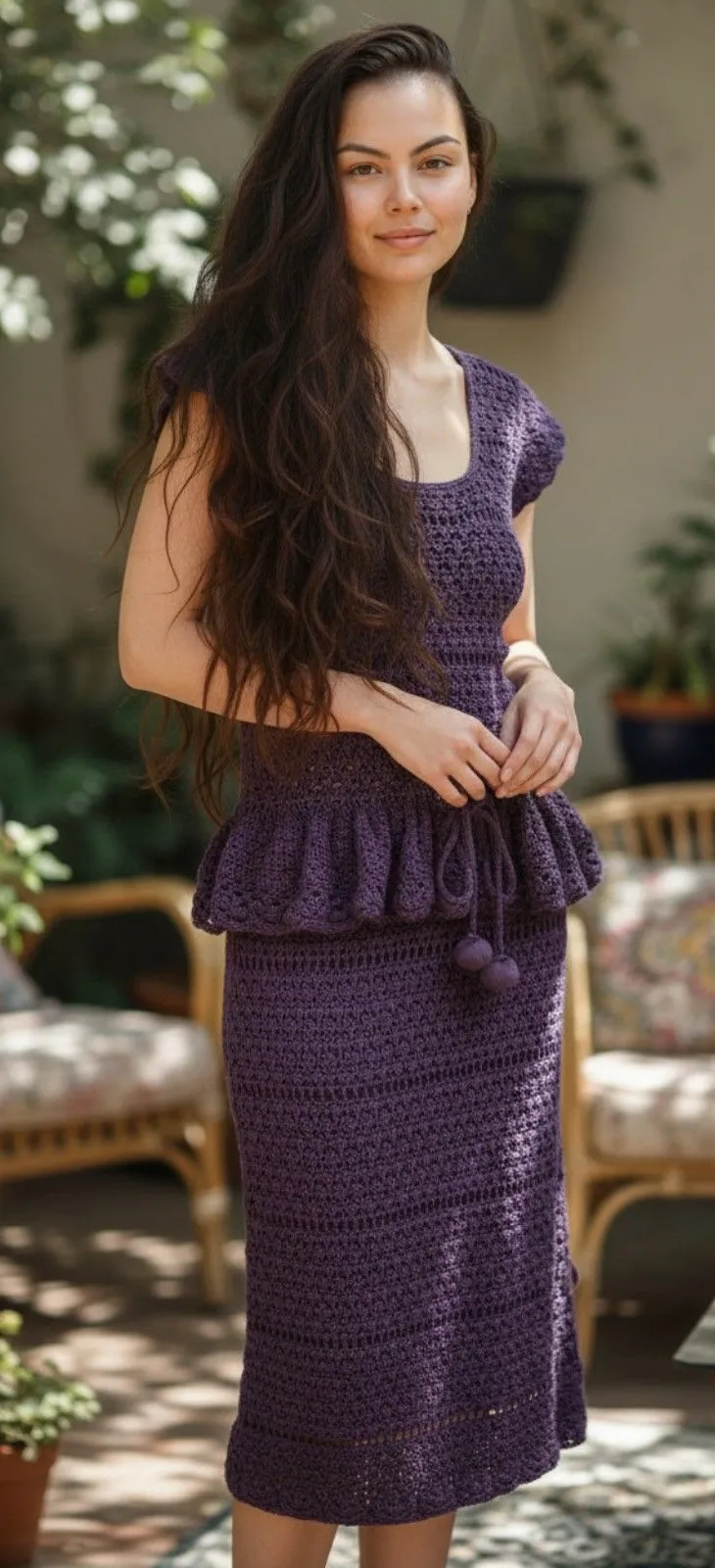 Betsey Johnson Vintage Y2K Purple Lace Crochet Peplum Knee Length Dress Size Large Size: Large Styl... Show more