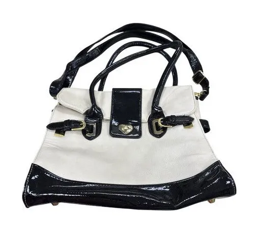 This Betsey Johnson crossbody purse offers style and versatility with its two-tone cream and black d... Show more