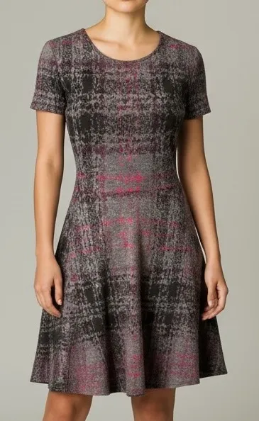 Stylish fit and flare dress from Betsey Johnson. This dress features a unique gray and pink plaid pa... Show more