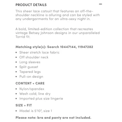 Betsey Johnson collab with Torrid one piece lacy catsuit, Torrid size 4 which equals a plus size 4X... Show more