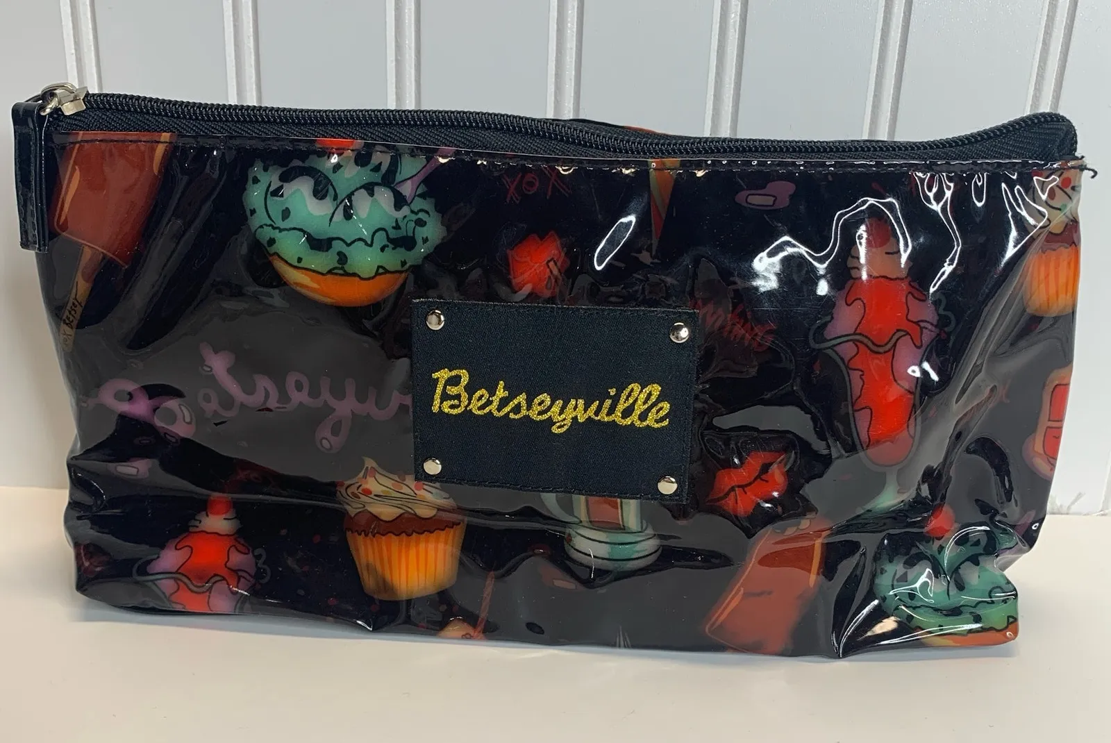Betseyville Makeup Bag Black Plastic Cupcakes Sundaes Ice cream 11 x 6 x 3" - $25 - From Kayla