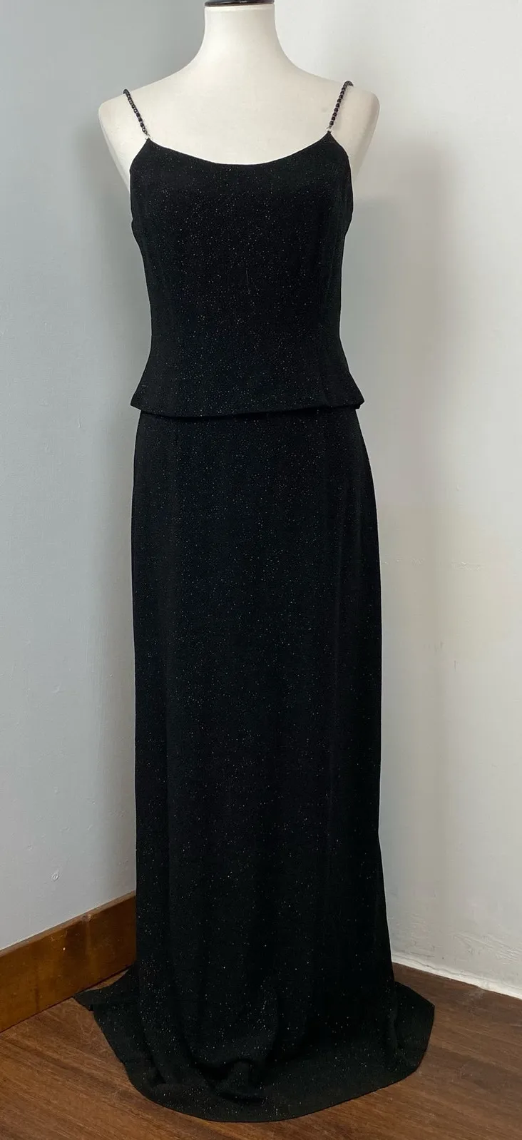 Betsy & Adam Gown Black with Sparkling Throughout Evening Maxi Beaded Straps High Back Slit Hidden Back Zipper Lined at Chest Gorgeous Dress Stretchy 12P Chest 18” Waist 16” Length 58” Slit 24.5” Excellent condition Cocktail Wedding Mother of Bride Mother of Groom Ball Evening Out Date Night