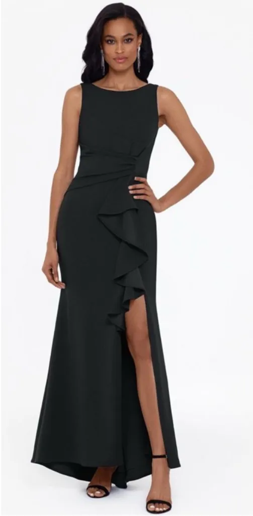 Betsy & Adam Christine Scuba Crepe Ruffle Bow Detail Gown Black‎ 14 Black - $125 - From Nordic