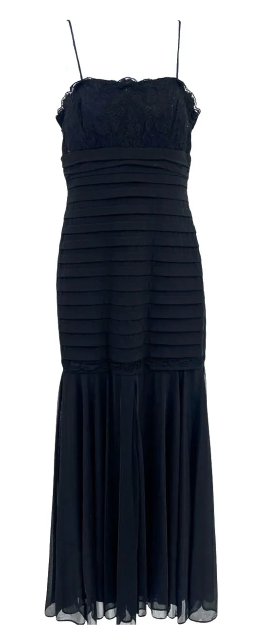 Black Betsy & Adam Lace Chiffon Tiered Gown Sz 8 Whimsigoth Glam Holiday Y2K Prom Gala Spaghetti str... Show more