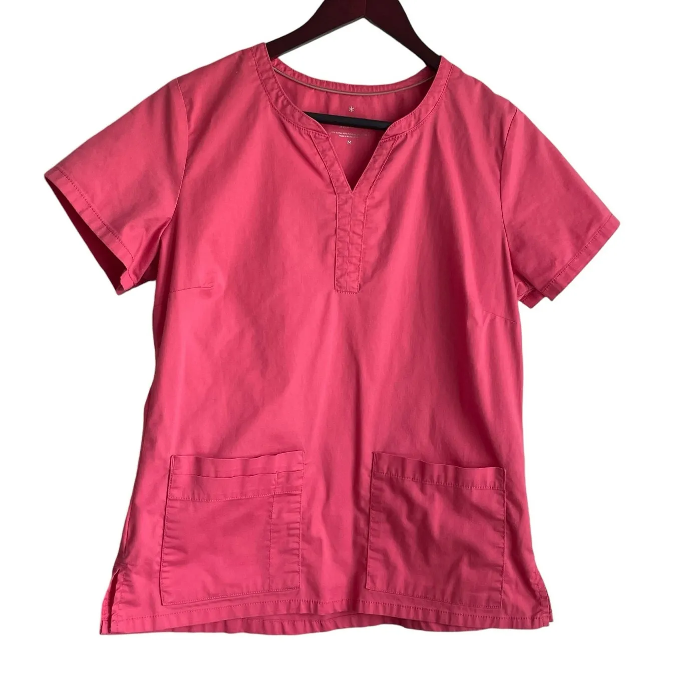 Beyond Scrubs Women Scrub Top M Pink Medical Uniform Nurse Workwear Casual Well cared for condition - no flaws noticed Features:: (First picture truest color) -lightweight -v-neck -pockets -short sleeve -relaxed silhouette -cotton polyester spandex blend, machine wash Style Profile: comfortable, easy care, packable, feminine, versatile, stylish, neutral, natural fabric Approximate Measurements: flat lay: * SEE MEASUREMENTS IN PHOTOS *Pet/smoke free home *1-2 day shipping *Bundle and Save