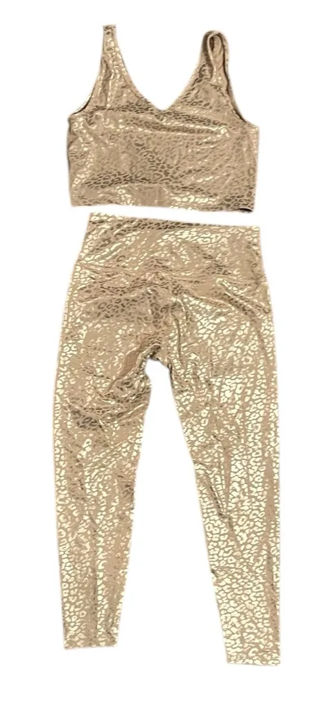 Shimmering gold leopard print leggings set. Includes matching top and leggings. Beyond Yoga. Size XL... Show more