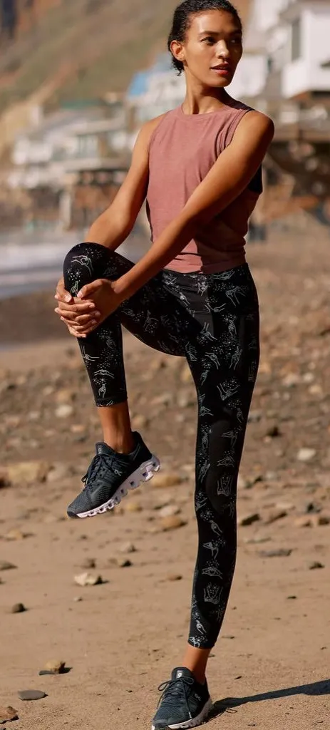 Beyond Yoga Printed Leggings. Color Black. Size Small. GUC- small stain on front (right side). Measurements are in the photos. SF, dog friendly home. #Celestial #Astrological #Stars #Activewear #Athleisure