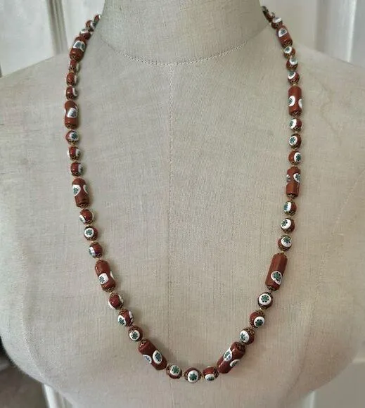 🌸 Vintage Venetian Glass Beaded Necklace - Caramel Brown Millefiori Beads 🌸 A beautiful vintage t... Show more