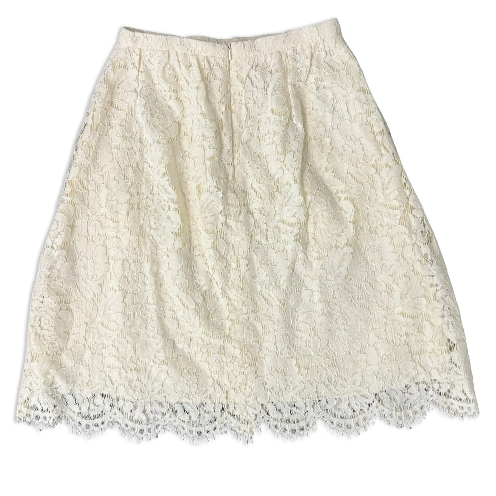Falls to modern tea length. Features intricate blooms, super delicate scalloped and eyelash lace, and POCKETS!!! Originally $200, bought at a sample sale. -Back zipper with hook and eye closure -Nylon, cotton lace Double lined. Waist: 12 inches laying flat / 24 inches full waist Length: 23 inches All measurements are approximate and pictured in the photos so you can see how the item was measured. cottage, cottagecore, lace, delicate, victorian, fairy, fairycore, bridal, boho, lace, bohemian, bride, wedding, anthropologie