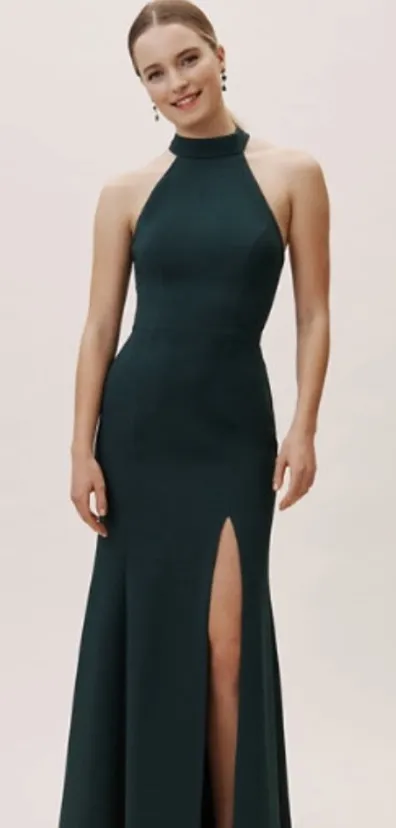 BHLDN Juliana High-Neck Side-Slit Stretch Crepe Maxi Dress $248 8 formal evening Green - $140 - From Madi