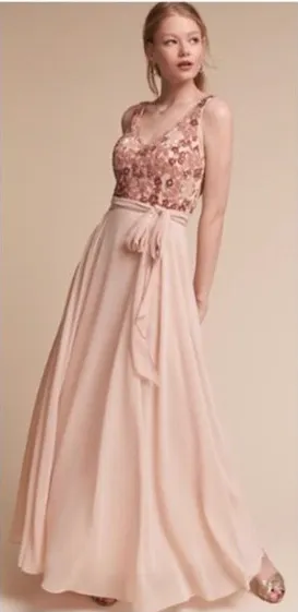 BHLDN Kiera Chiffon Beaded Floral Gown Dress in Blush Pink; excellent condition -beaded bodice -zip... Show more