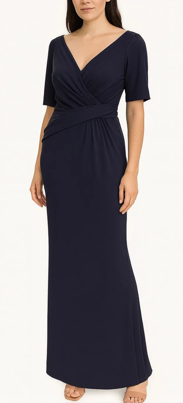 Elegant and timeless BHLDN navy faux wrap gown featuring a flattering v-neckline, cinched waist, and short sleeves. The soft stretch fabric drapes beautifully and creates a feminine silhouette perfect for any special occasion. The back slit allows for easy movement and adds a touch of modern sophistication. Ideal for weddings, formal events, date nights, and cocktail parties. ✨ Details • Brand: BHLDN • Color: Navy Blue • Size: 8 • Faux wrap design • Short sleeves • Gathered & cinched waist • Back slit • Maxi length • Excellent pre-loved condition 💙 Perfect for: wedding guest, mother of the bride, black-tie events, formal dinners, rehearsal dinners, and elegant evening occasions. BHLDN navy gown, faux wrap maxi dress, short sleeve formal dress, v-neck navy gown, evening gown, wedding guest dress, formal navy dress, elegant bridesmaid dress, long blue gown, classic wrap silhouette, cocktail gown, cruise formalwear, navy event dress, timeless navy maxi, black tie occasion gown, stretch jersey formal dress