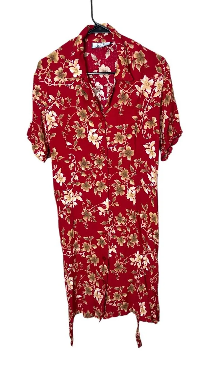 BICE Red Floral Print Short Sleeve Collared Button Front Vintage Shirt Dress Size M/L Add a touch o... Show more