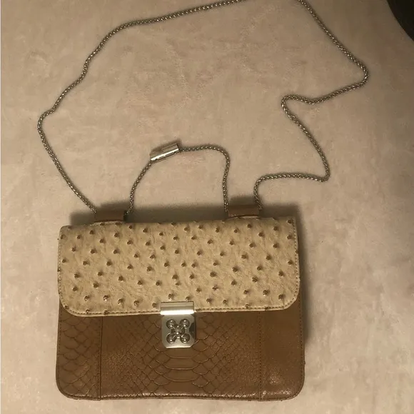 Trendy Big Buddha Chain Shoulder Crossbody Bag-Really Nice & Stylish Crossbody Bag with Color Blocked Detail, and Chain & Metal Accents. Tan & Brown. Adjustable. Converts into a Shoulder or Crossbody Bag! Good Condition Everywhere Except Bottom and Sides of bag-there’s peeling. Please see pics. Such a CUTE Bag💕 Measurements: 11” W, 7.5” H, 2.5” D. 🫶🏼THANKS FOR LOOKING🫶🏼 Good Condition Everywhere Except Bottom and Sides of bag-there’s peeling