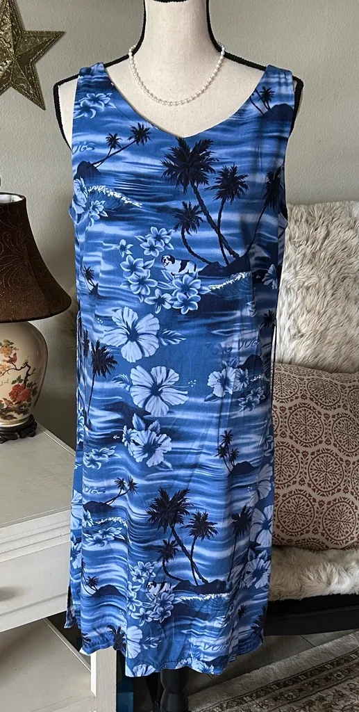 So cute Vintage gem 💎 Couple faint marks on the front nothing noticeable when wearing size medium Offer and bundle 💕 Estimated measurements, 20” pit to pit 41” top to bottom Tie at back to add shape Hawaii, tropical vacation, travel, lightweight, breathable, beach pool cover-up resort wear cruise 80s 90s