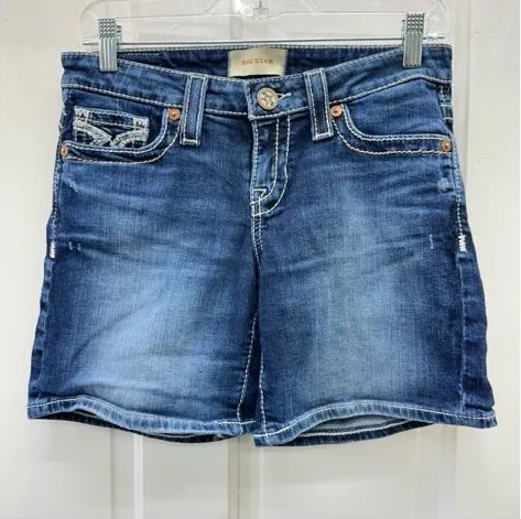Big Star thick stitch denim jean bermuda shorts women's 27 inseam is 6.75 can be rolled up or left d... Show more
