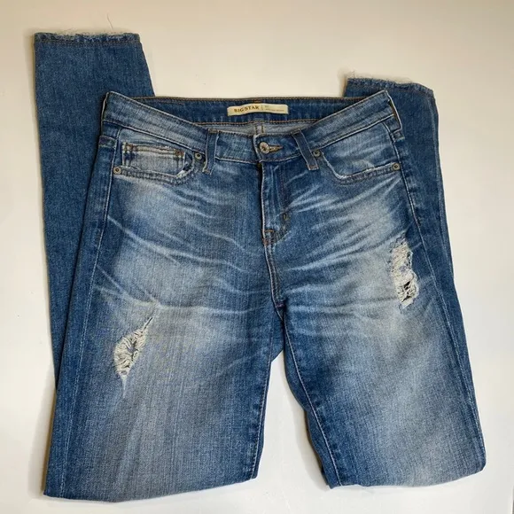 Big Star women’s Liv midrise skinny medium blue wash denim jeans. Distressed. 5 pocket. ⭐️ EUC ⭐... Show more