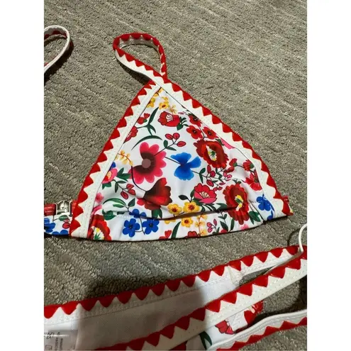 Brand new with tags, smoke and pet free home. No flaws. SO CUTE. Reminds me of Greece and Portofino, Italy. Perfect for that European vacation. Pattern is a little different from model pics but nearly identical. Size medium bit its a micro bikini so keep that in mind it runs smaller. Great amount of stretch. Perfect for the beach, pool, tanning and any tropical vacations. The brand is called Bikini X