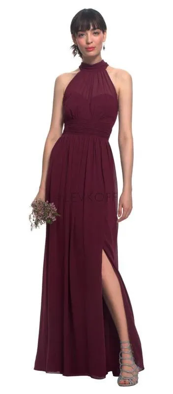Levkoff Women's Burgundy Chiffon Halter Neck Ruched Waistline Maxi Dress Size 10 Capture timeless el... Show more