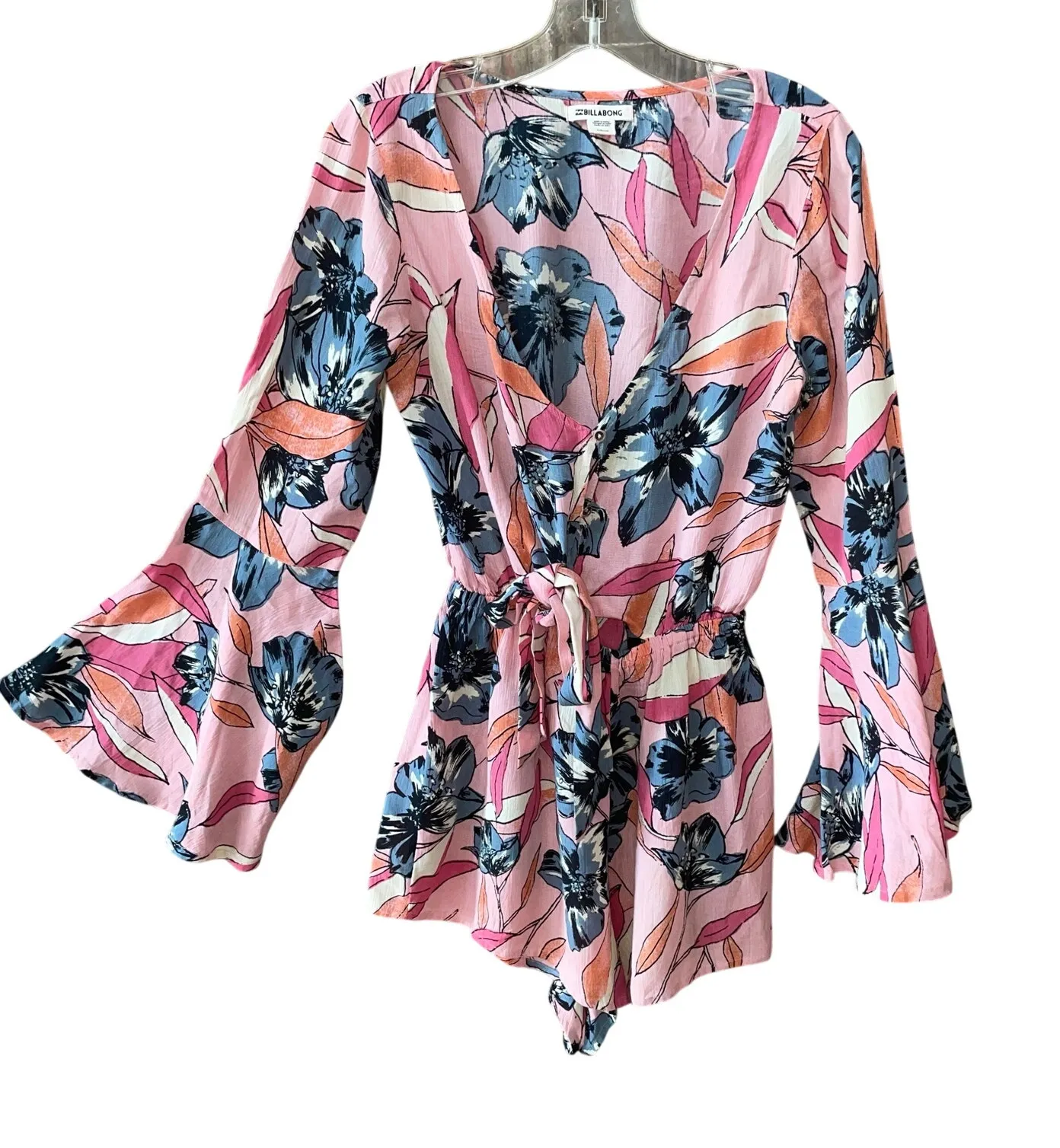 Excellent condition womens size Small pink floral short romper with long bell sleeves, small cut out... Show more