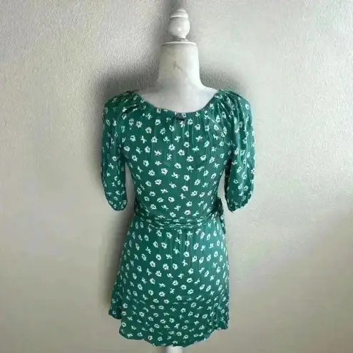Lightweight woven cotton-blend fabric, in a dainty white, red, and yellow floral print, shapes a V-n... Show more