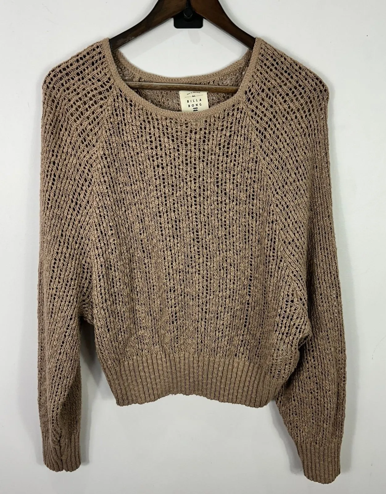 pit to pit 21 length 24 billabong, crochet sweater, coastal boho, indie, beach sweater, open knit t... Show more