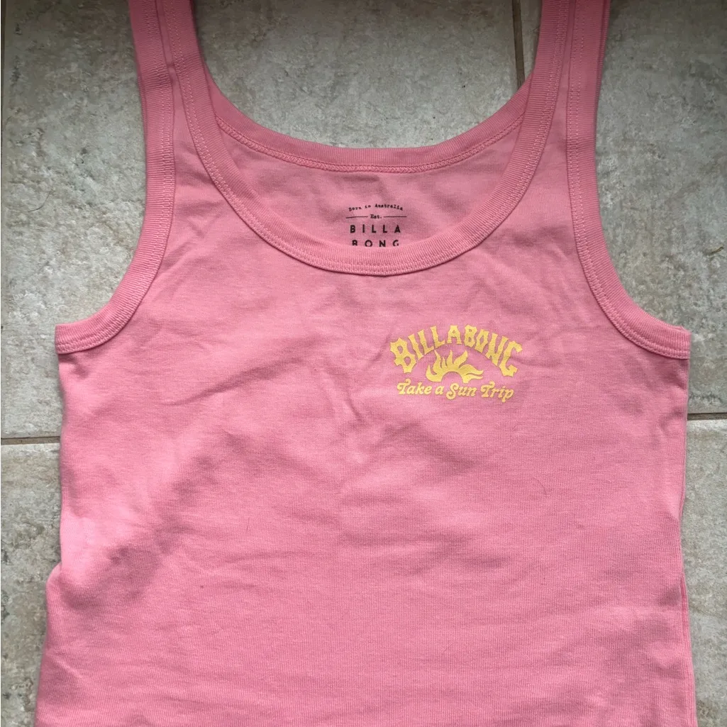 Soft pink crew neck tee. Features Billabong logo on front.