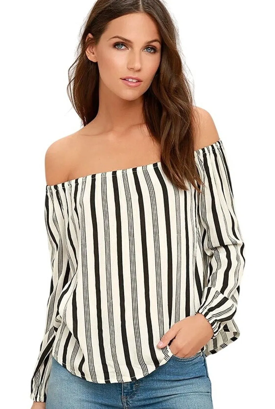 This off-the-shoulder top features playful stripes and a relaxed fit, perfect for warm-weather adven... Show more