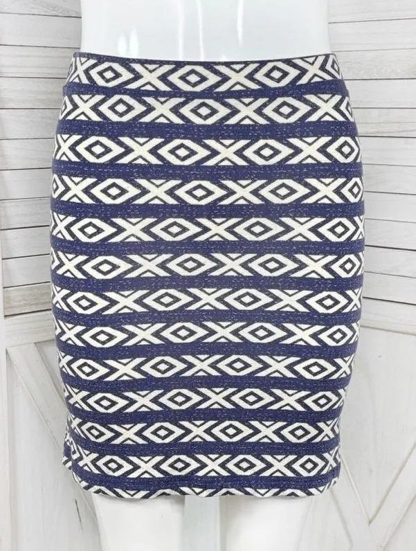 Billabong Tribal Geometric Print Stretchy Knit Mini Skirt Blue White Size Small Navy blue & ivor... Show more