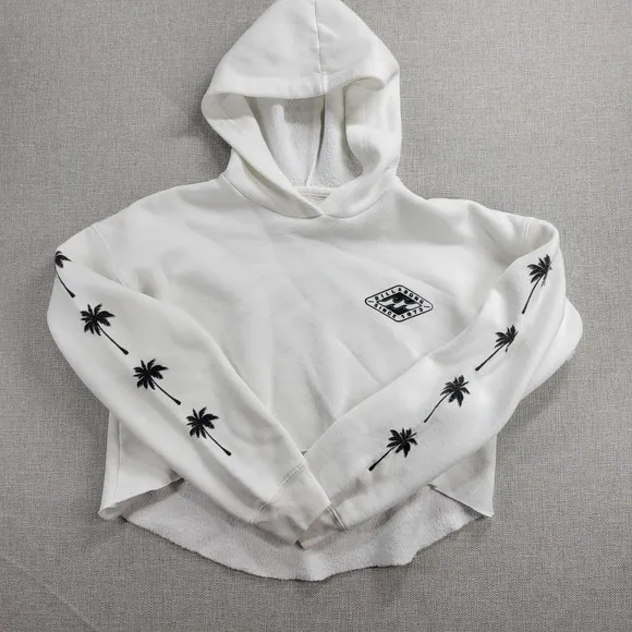 Billabong Windy Palms Womens Sweatshirt Size M White DIY Raw Cut Hem Crop Hoodie Product Description... Show more