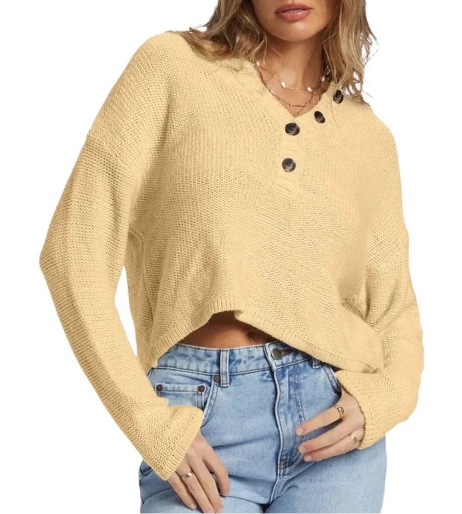 Billabong Womens Henley Sweater Butter Yellow Slouchy Knit Beachy Coastal One Size Pit to Pit 23” L... Show more