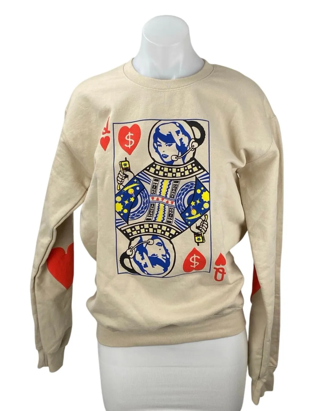 Billionaire Girls Club Queen of Hearts Beige Graphic Long Sleeve Sweatshirt Sweater Top S Size: S C... Show more