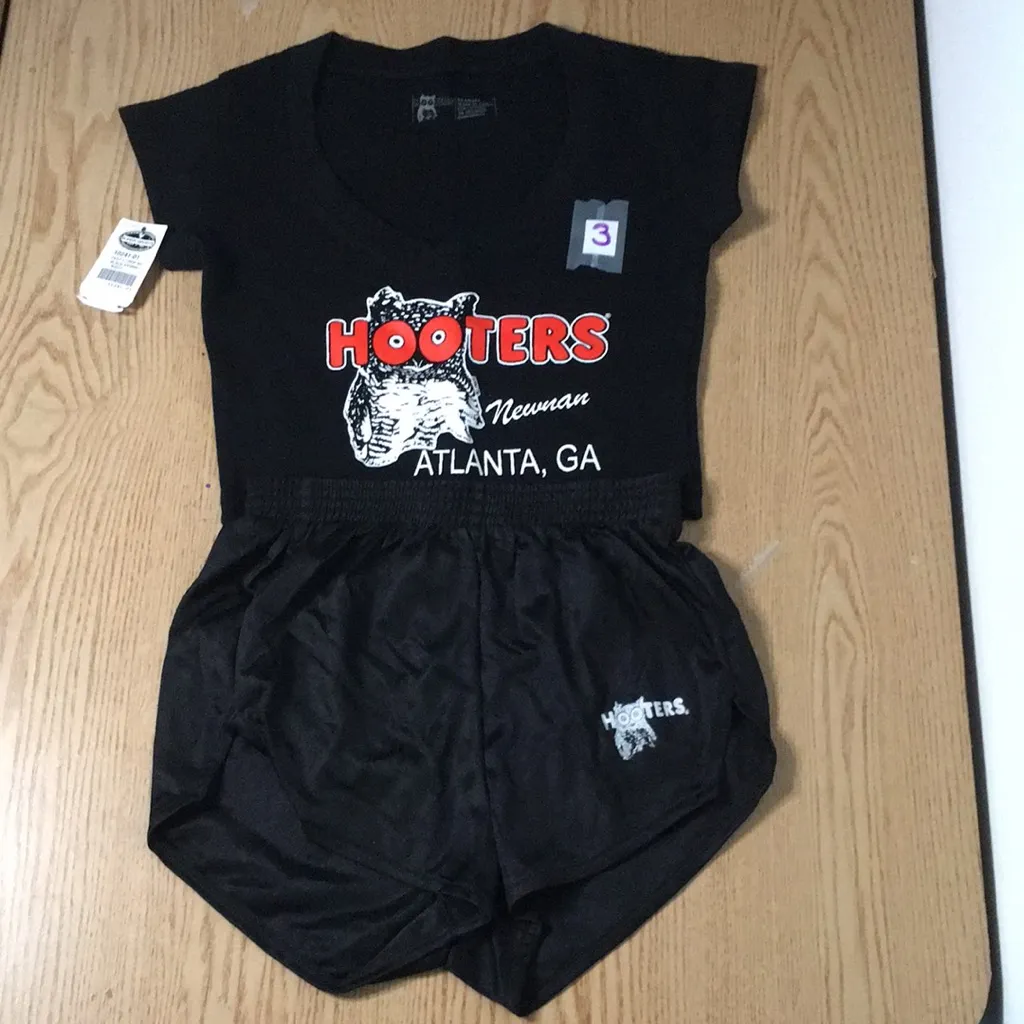 Bin 32 #3 New Hooters Girl Uniform Crop Top and Original Vintage Shorts From Atlanta Georgia Top size: XXS Shorts size: XXS Color: black Super sexy!! Makes a great Halloween costume 🎃👻💀