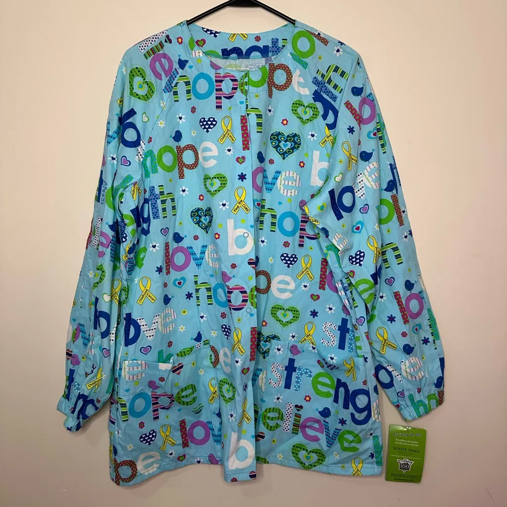 Bio Childhood Cancer Scrub Top in Light Blue Size Large NWT Love Hope Strength - $26 New With Tags - From Tara