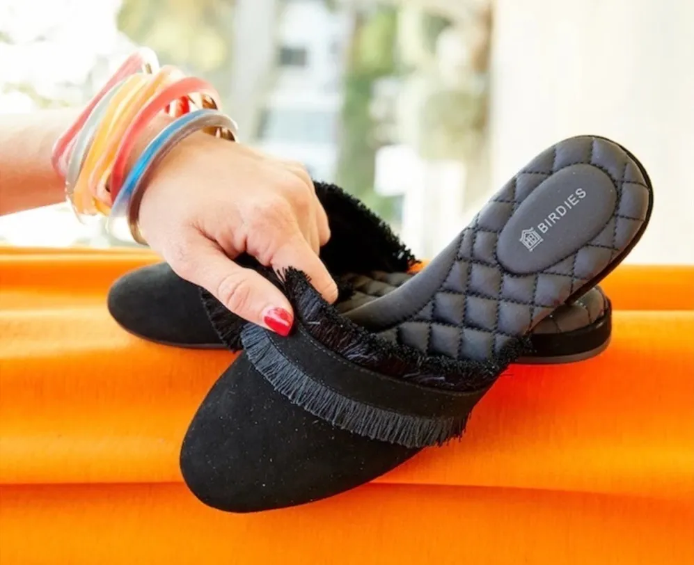 - Soft and supple black suede leather upper with fringed detail - Rubber non-slip sole - 15mm heel; dual layer high density memory foam cushioning for shock absorbing comfort - Insole is finished with signature satin quilting Tags: casual, preppy, resortwear, vacation, travel, neutral, closet staple, elegant, birdies slide, neutral black birdies mule, fall, autumn slide slippers • Women's size 11 • Great used condition with typical signs of gentle wear. Please review photos. Offers welcome! All measurements are on the pictures above. Fast shipping! Offers always welcome! •BX11-5.00 Don't be shy I accept offers!