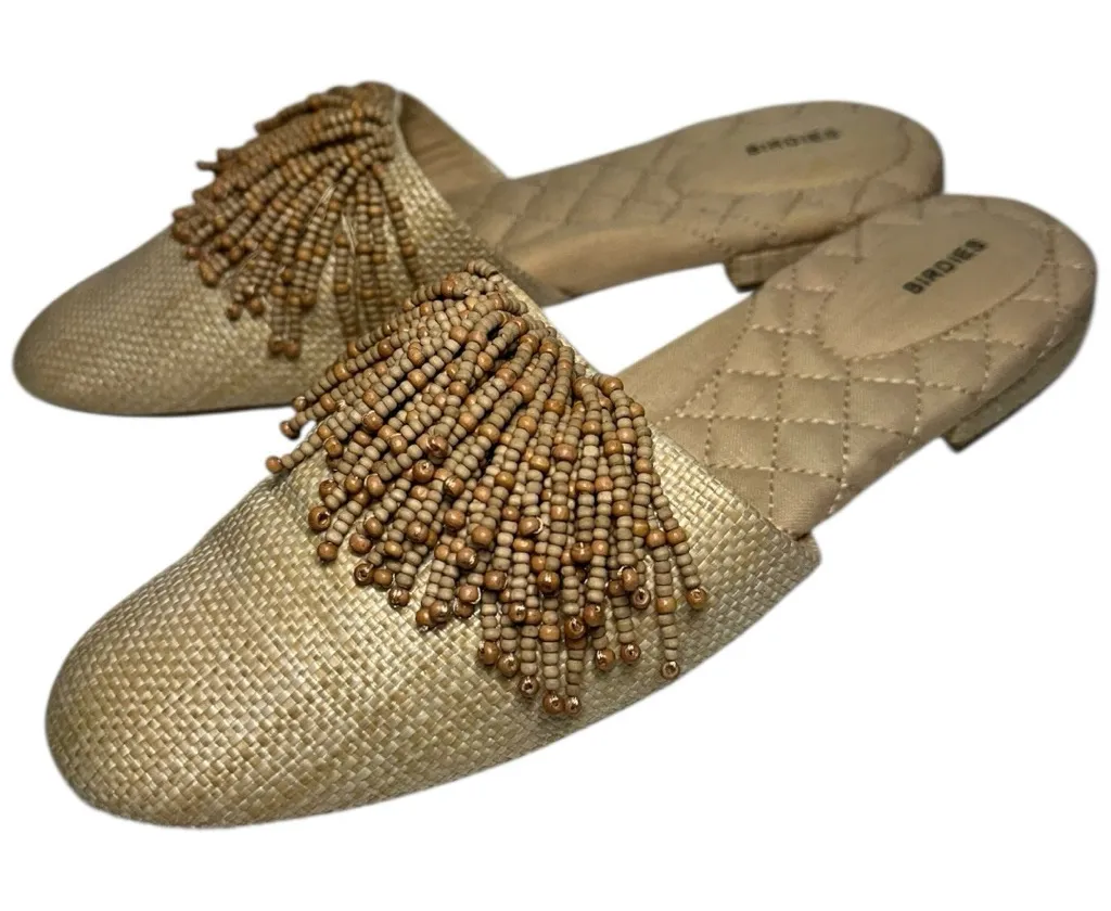 Birdies Women’s Size 8 Beige Tan The Songbird Raffia Fringe Tassels Sandals Mules ▪️ Excellent used... Show more